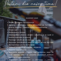 Ako ste mladi, komunikativni, odgovorni, ambiciozni i raspoloženi za pružanje usluga gostima na visokom nivou, mi smo pravo mjesto za tebe. Grupacija Casa del Mare želi baš ovakve ljude koji su spremni za rad koji prevazilazi tradicionalnu uslugu. Želimo ljude koji će izaći iz svoje komforne zone i priključiti se avanturi zvanoj “gost je uvijek u pravu”.